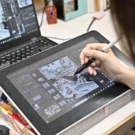 アトリエには決まった消灯時間がなく、広い作業スペースを漫画家が自由に使えるため、深夜や早朝に描きたいと思ったときにも描けるから助かっています。漫画家一人ひとりに、それぞれの生活のリズムがあるので、どんな人にも対応してくれる施設であることがうれしいです。周囲に騒音がなく、静かなことも集中しやすいです。私の場合、自分の作品制作のほかに、他の漫画家さんのアシスタントをリモートで行なう場合があります。そのアシスタント業務も、ここの環境だとはかどります。