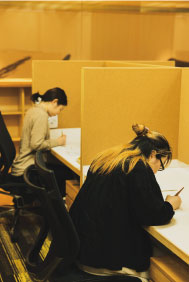 休みの日は日用品の買い物に出かけたりして過ごしますが、住居棟の自室で描くこともあります。
